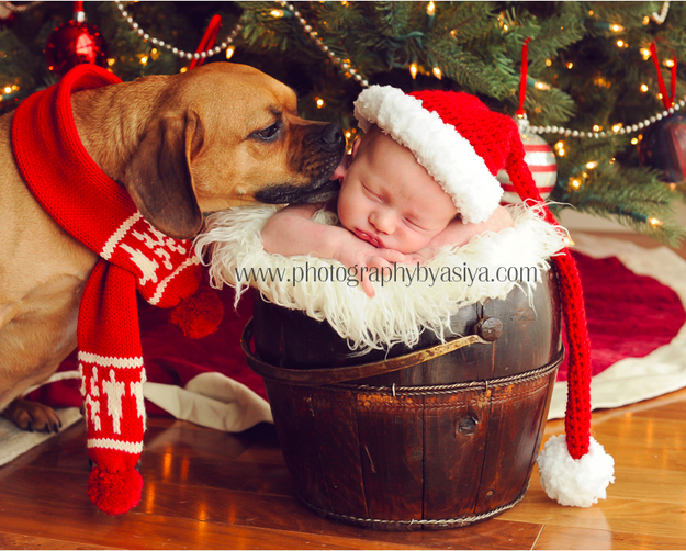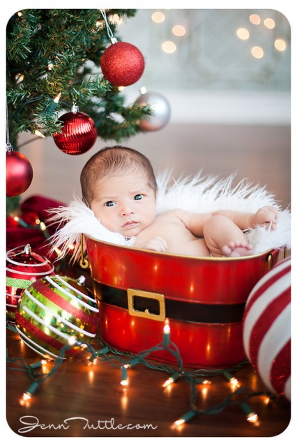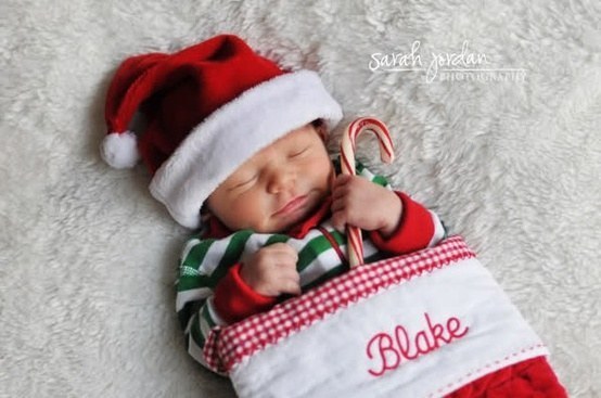 生まれて初めてクリスマスを迎える赤ちゃんの記念写真がとっても可愛いのでご紹介します。