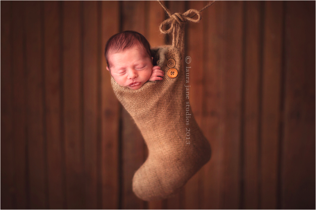 クリスマスソックスに詰まった赤ちゃん1